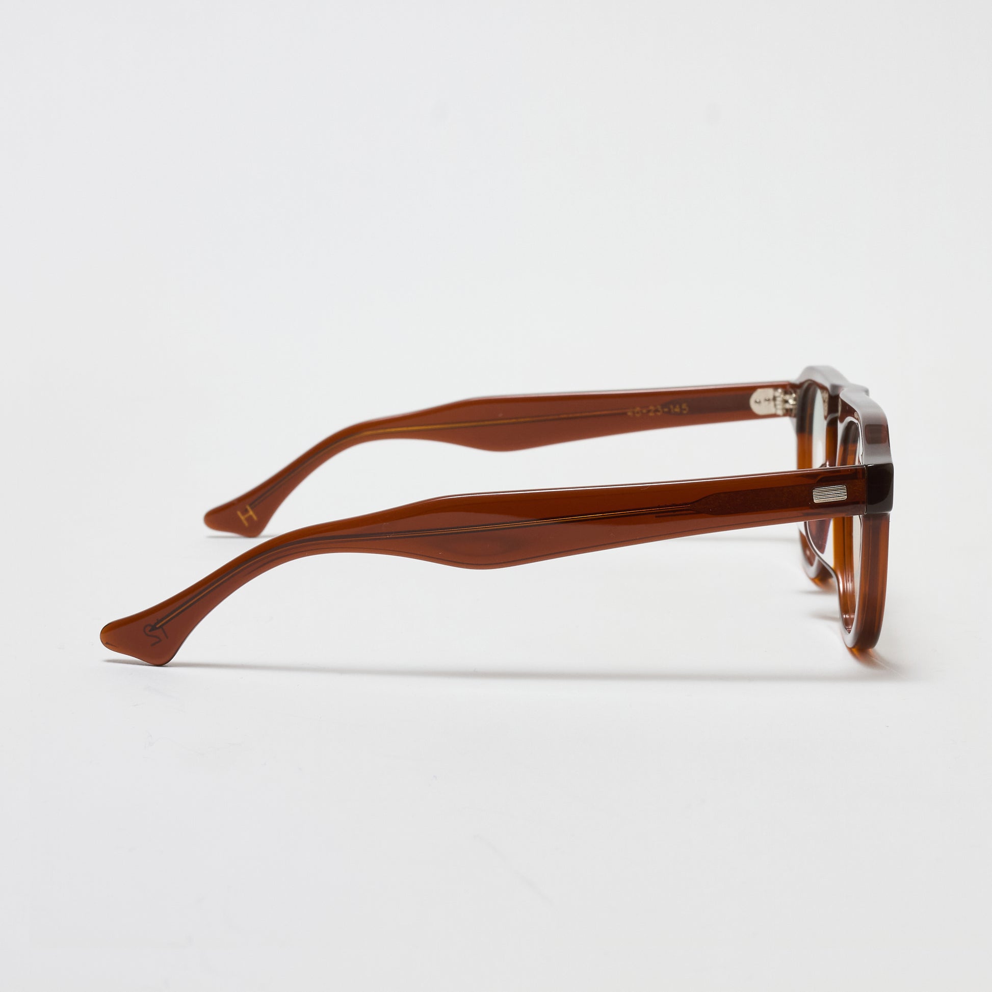 滑らかに流れるテンプルや艶を抑えたアセテート素材が、落ち着いた存在感を引き立てます。