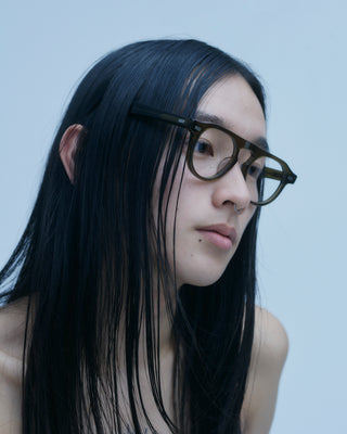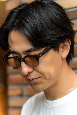 滑らかに流れるテンプルや艶を抑えたアセテート素材が、落ち着いた存在感を引き立てます。